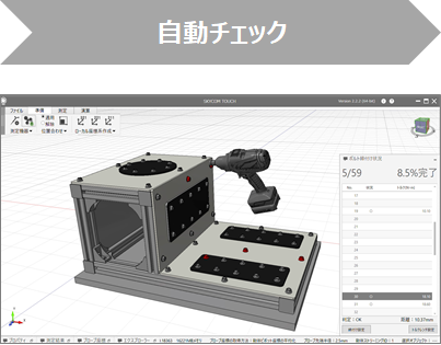 進捗状況の画面表示に対応しており、色や判定結果等を視覚的に表示することが可能です。表示による視覚的なフィードバックだけでなく、音やパトランプ等でのアラートも可能。さらにCADやCSVの読み込みに対応しており、現場の特性に合わせたフィードバックが実現。