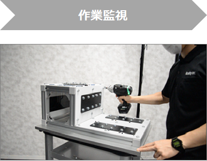 カメラは工具につけたマーカーの位置をもとに、自動で先端の動きを検知。漏れ、重複、順序、時間検知等、作業中のさまざまな動きを監視します。