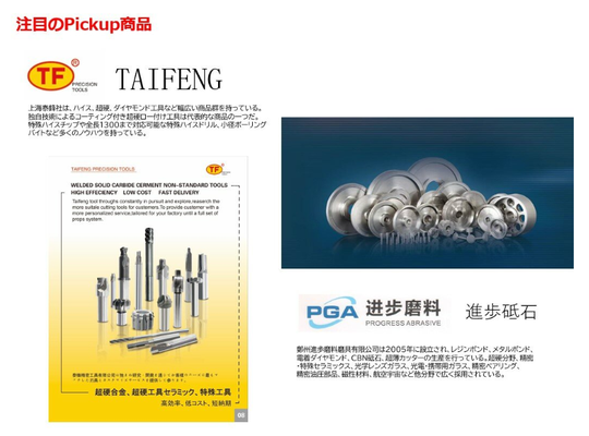 中国工具の代名詞とも言える株洲工具をはじめ、鄭州ダイヤ、北京ワールドダイヤなどの定番メーカー。日本国内販売が好調のダイヤモンド/CBNホイールのSAIY、特殊工具の上海ゾロン。半導体、アルミ加工、金型・鋳型加工向け工具など。